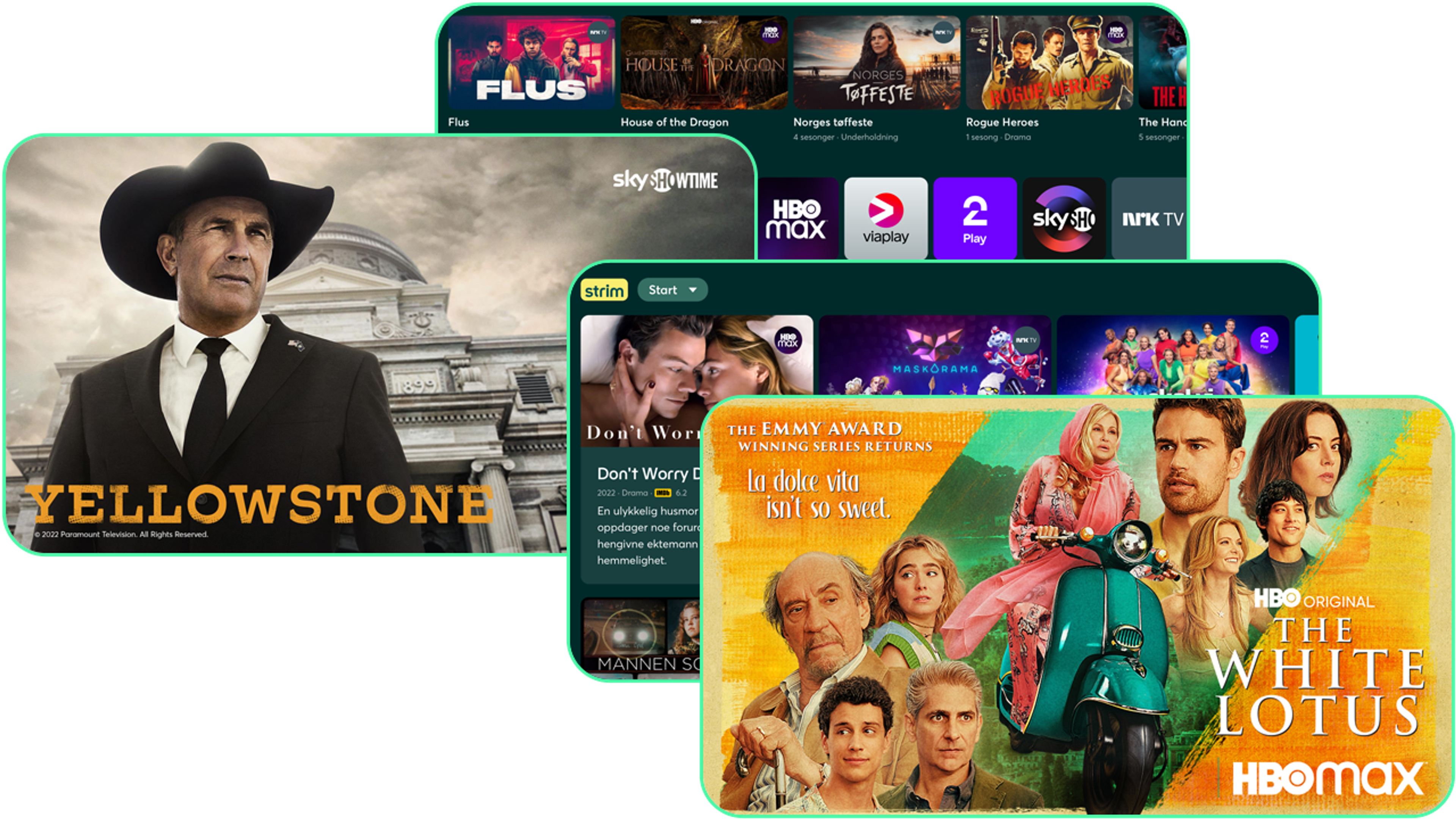- De fleste distributører av innhold tilbyr apper til blant annet Apple TV og flere typer SMART TV. Dermed kan du enkelt se innhold i flere rom uten problemer.